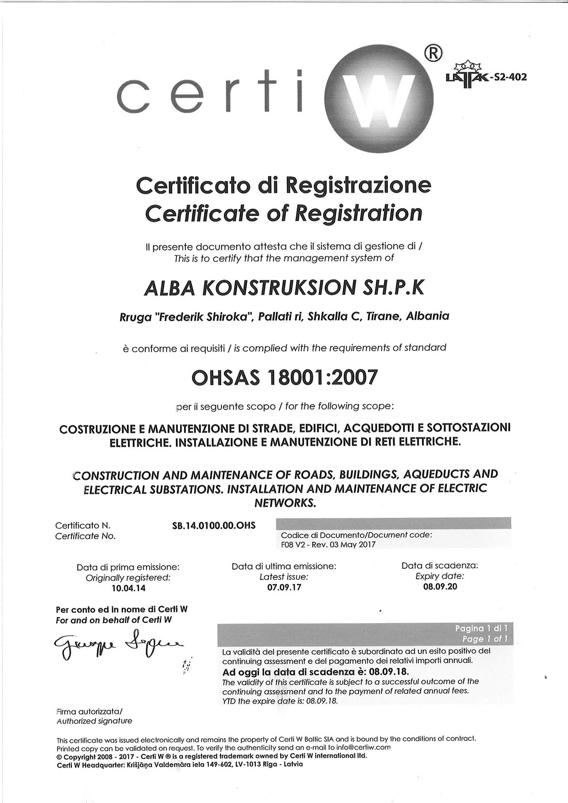 European OHSAS 18001 QM Standard